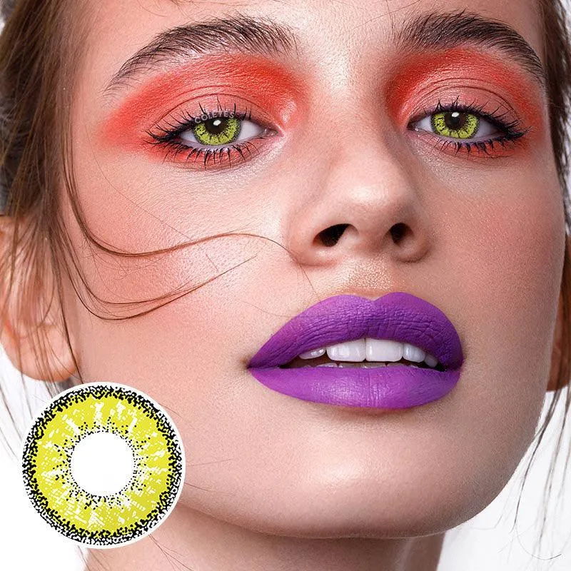Like sunflowers in a field, not all yellow colored contacts are the same. You'll find solid colors, subtle hues, and bold patterns. Looking to morph into a cat-like creature? Try contacts with a vertical pupil design. Going for an infected zombie look? A cloudy, yellow-green variant might just be your best bet. Remember, your eyes are the window to your Halloween soul, make them count!