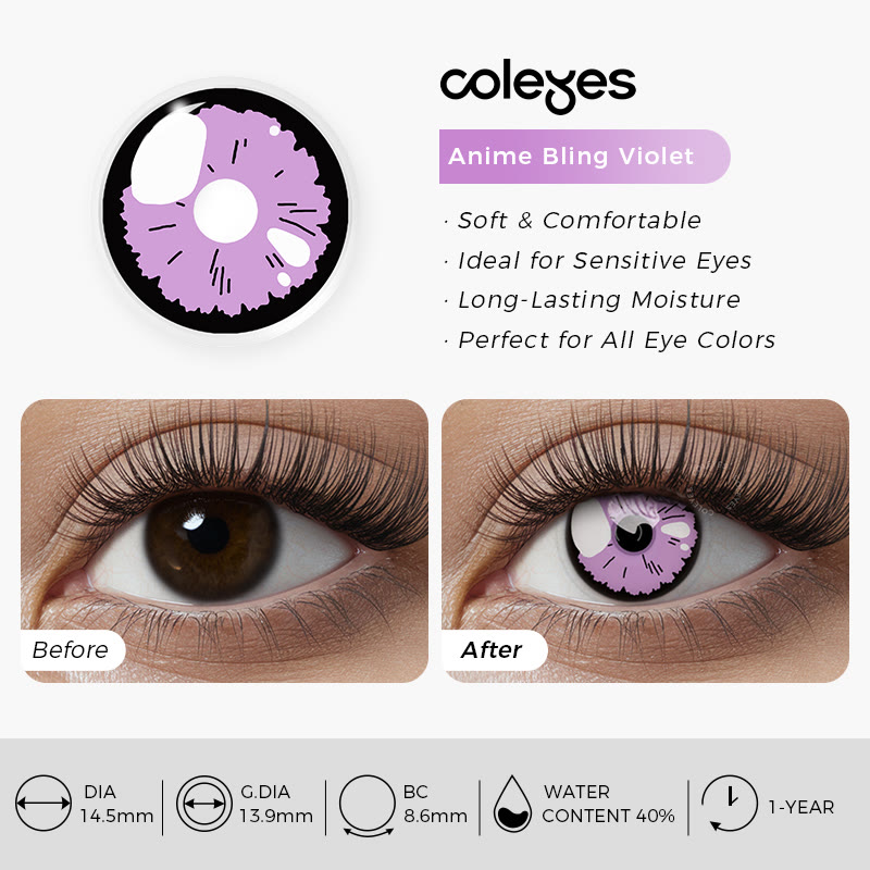 Coleyes Anime Bling Violet Yearly Cosplay Colored Contacts