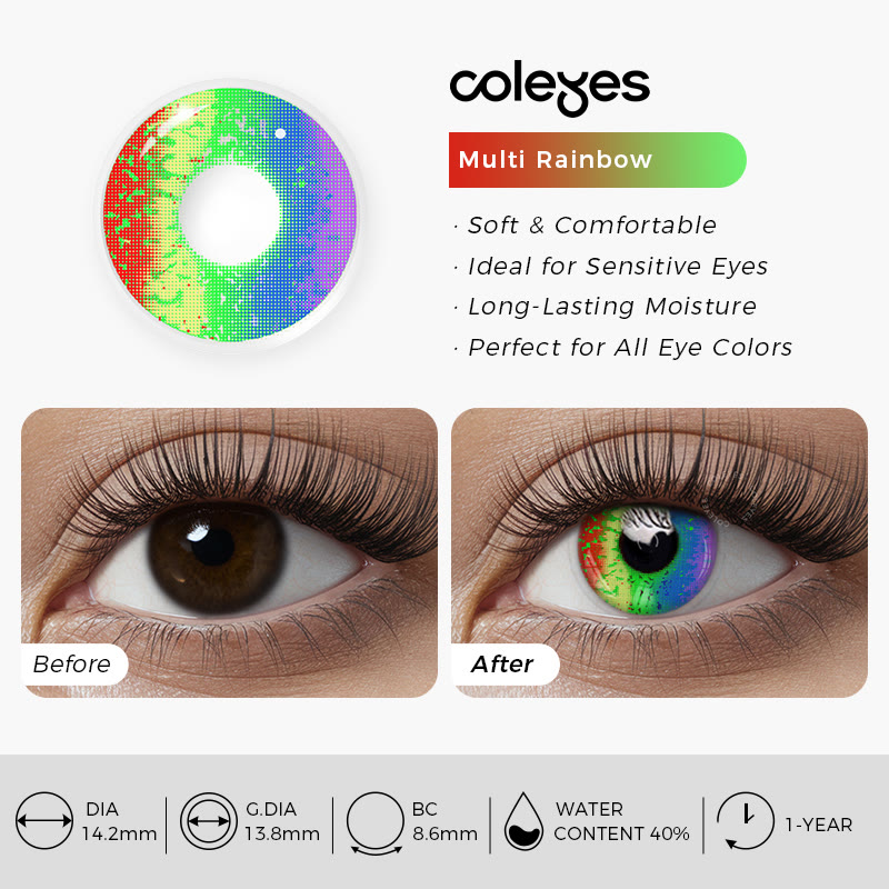 Coleyes Multi Rainbow Yearly Prescription Cosplay Colored Contacts